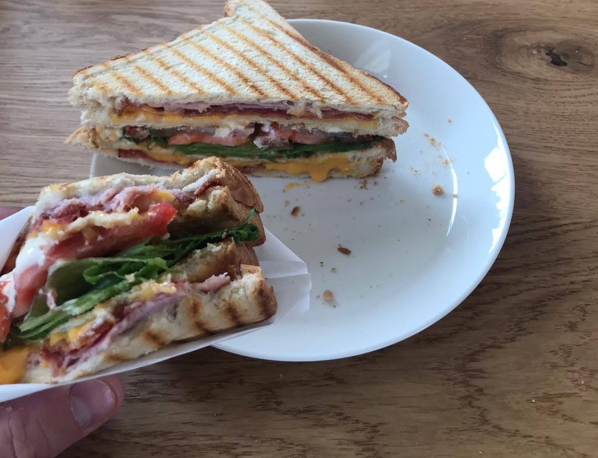 Jos halajaa järkätä niihin pippaloihin makkaraperunoiden lisäksi jotain muutakin, ni ottaa tän. Tää o yhtälailla metoksen oikee (asiallinen, ei kylmene ku susihukkanen puhkuu vähän ja painaa perkeleesti) voileipäparila. Pari pötköä isoja paahtoleipiä, majoneesiä, kinkkua, metwurstia, salaatinlehti, tomaatti, cheddar, mitälie ja tän väliin ni rok. Tulee parempaa kolmioleipää ku baarissa, ku ei tartte viimeistä penniä vinkua raaka-ainepuolelta.
